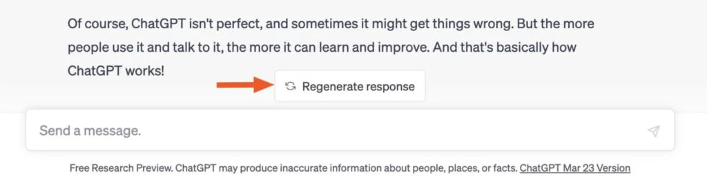 If the response isn’t quite what you’re looking for, and you want to use the same prompt, click Regenerate response to get ChatGPT to try again.