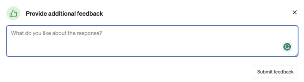 Since ChatGPT doesn’t have the ability to think like humans do, it can’t determine whether a response is good or bad on its own. Instead, it relies on humans to provide that data to help it learn. So, if the response was helpful, click the thumbs-up icon beside it. You also have the option to share what you liked about the response to help ChatGPT improve.