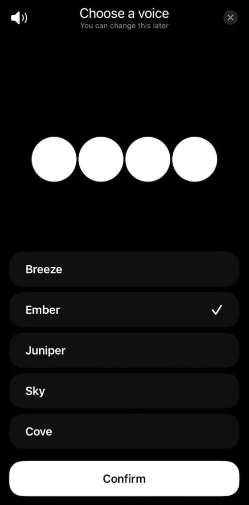 You can also choose a voice for ChatGPT. In the Settings menu, tap Voice. Select one of the five options, and then tap Confirm.